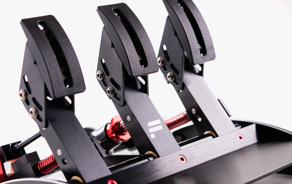 Resolución de 12 bits (4096 valores) en todos los ejes Placas de carrera alternativas en forma de D en diseño curvo. Ideal para pedales de pie Extensión del pedal para ajustar el ángulo de la placa del pedal y cambiar el ángulo de todo el brazo del pedal La sensibilidad de los frenos se puede ajustar a través del menú de ajuste del volante y durante la carrera. El motor de vibración en el pedal del acelerador indica el giro y el sobreviraje de la rueda trasera (el control mediante juegos es posible a través de Fanatec Wheel SDK)