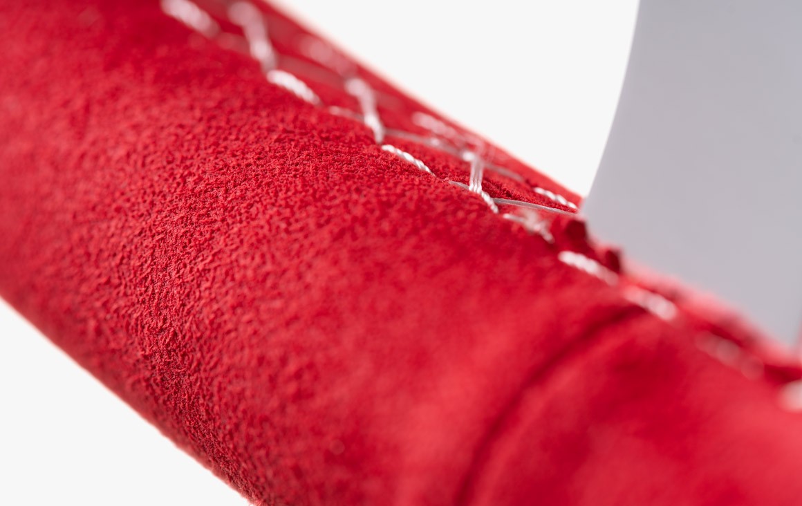 Red synthetic suede