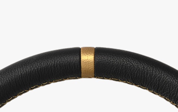 El borde está fabricado en aluminio cepillado y anodizado y está revestido de cuero liso de primera calidad y costuras doradas. Se incluyen tornillos de aluminio anodizado dorado.