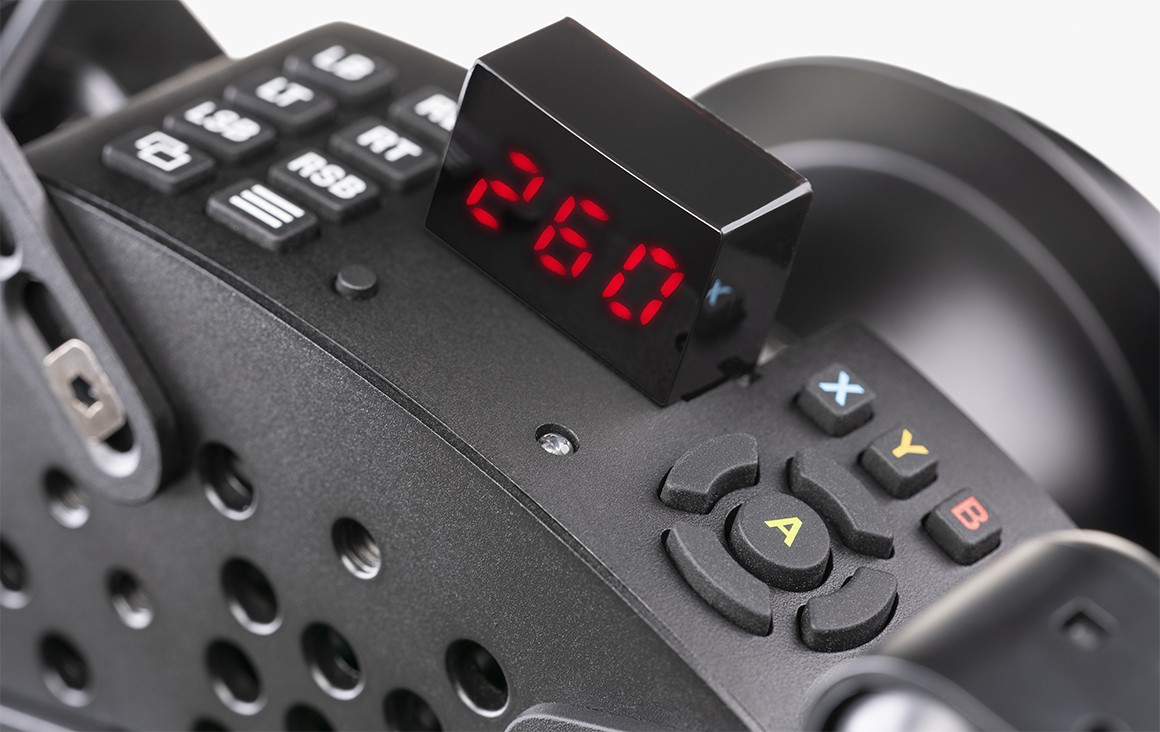 Three-digit LED display for Tuning Menu functions and telemetry data from compatible games or third-party software. It can be installed in two positions: upright or flat