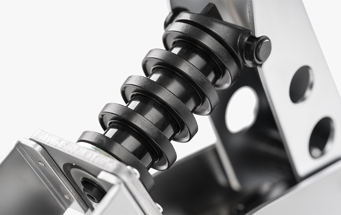 La pila de elastómero en la parte superior del sensor de la celda de carga proporciona una sensación fuerte y realista de resistencia bajo compresión.