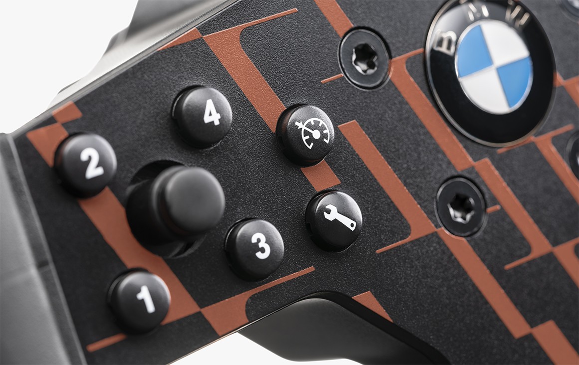 Un gráfico único diseñado por BMW se extiende por la cara frontal y el borde. El diámetro de 300 mm es adecuado para muchos tipos de vehículos, y la construcción liviana conserva detalles precisos de la retroalimentación de fuerza incluso con ajustes de par bajos.