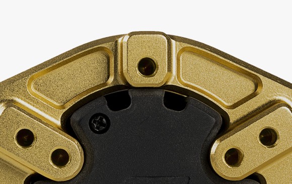 El diseño del marco Podium Hub rodea los componentes electrónicos para lograr el menor peso posible. El cubo central se crea a partir de una sola pieza de aluminio anodizado para una máxima resistencia.