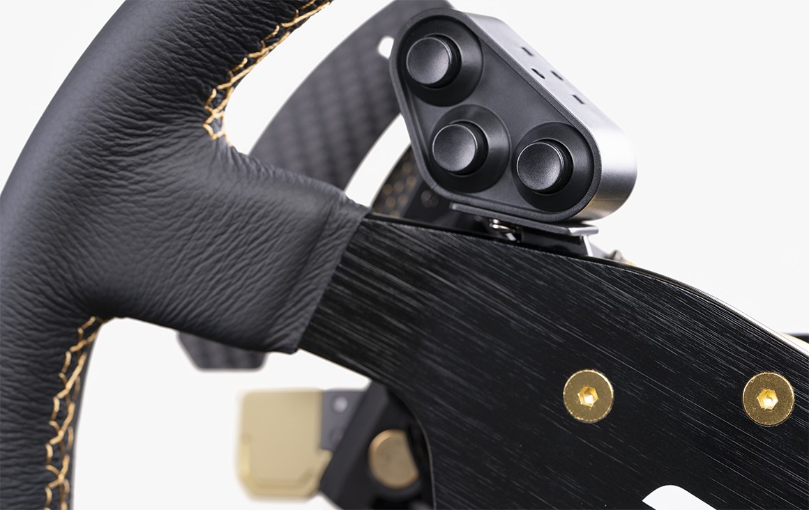 Los grupos de botones incluidos se pueden alinear y ajustar a lo largo de los rieles delanteros del Podium Hub para adaptarse a sus preferencias y volantes de diferentes formas y tamaños.